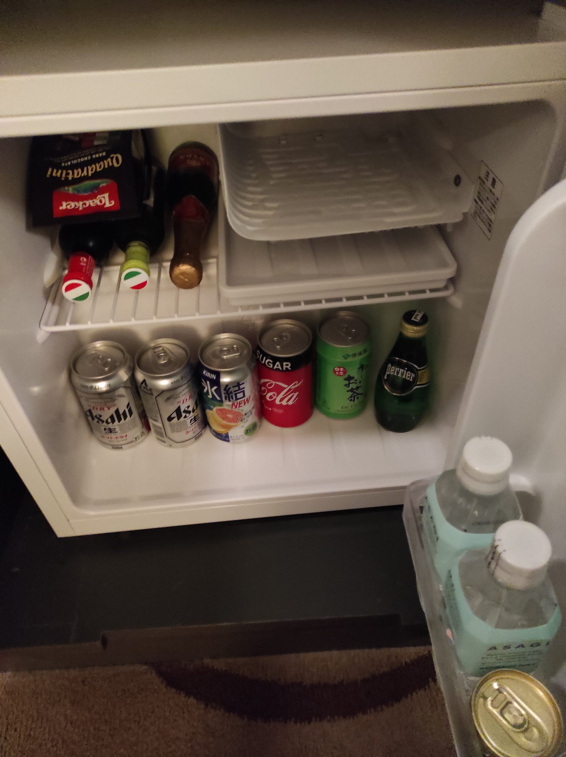 ミニバーは有料です。緊急事態宣言中はスパークリングワインのサービスがあったとか…なかったとか…?の